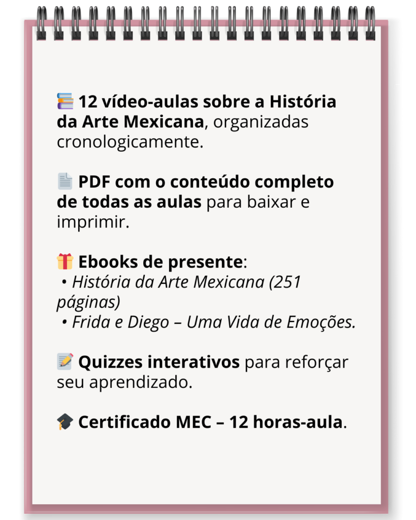 Pra te ajudar a mergulhar de vez na história da arte mexicana, você vai receber:
